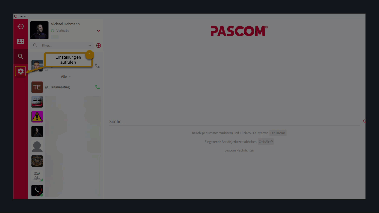 Über die Pascom-Software auf dem PC oder Smartphone. Hier navigieren Sie in die Einstellungen (Zahnrad) und wählen in der Navigation auf der linken Seite den Punkt "Telefon" aus. Sie sehen den Bereich "Telefoneinstellungen" und können in das dazugehörige Feld das Ziel für die Rufumleitung eintragen. Das Ziel der RUL erfolgt immer ohne zusätzliche Präfix-Ziffern wie beispielsweise die "0" für eine Amtleitung.