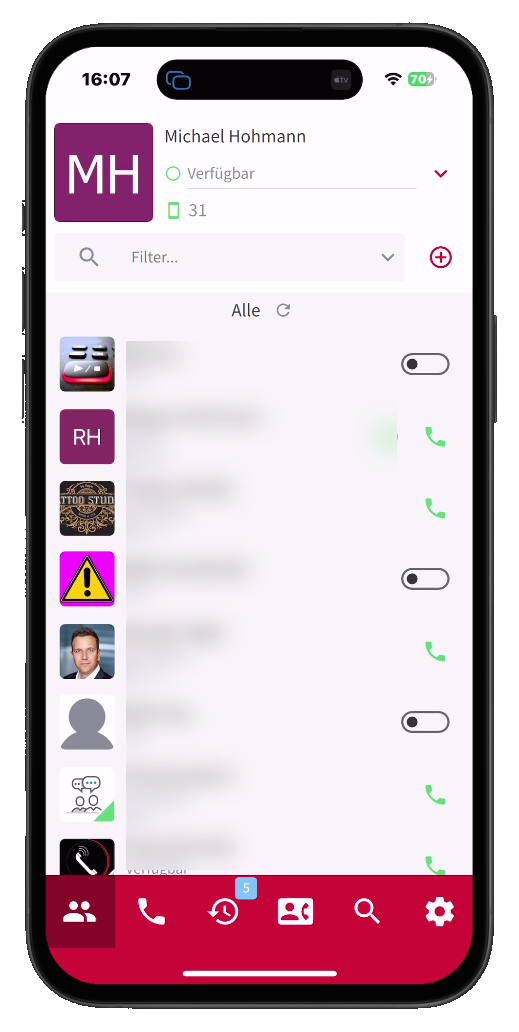 Pascom App "flackert"